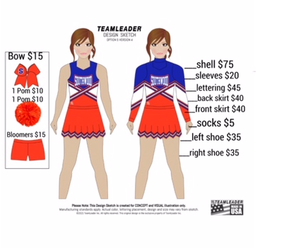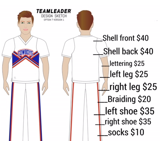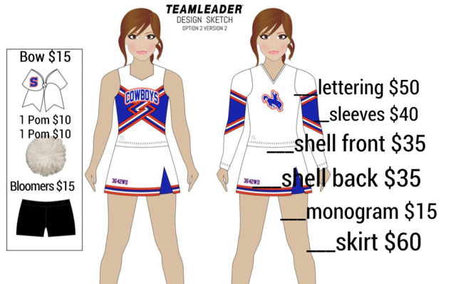 The cost of uniforms for 3 uniforms, 4 practice uniforms, megaphone, pompoms, bows, shoes, socks and warmups. Your donation help your cheerleader and is 100% theirs.