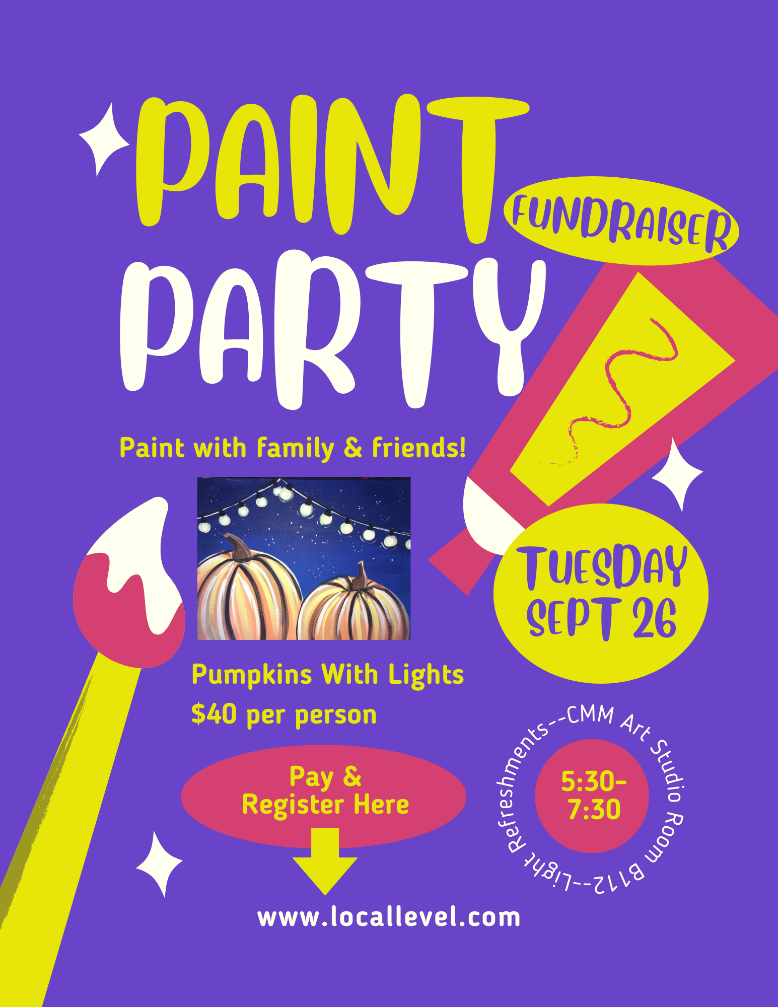 Let's paint together in the Stallion art studio! CMM students & staff, as well as family members, are all welcome. Each attendee will leave with your own painting on canvas created with guidance from Mrs. Sitton. Snack and water will be provided.
