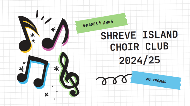 The Shreve Island Choir is $30 and it pays for their choir shirts and music for the entire school year. Only the 4th and 5th grade students that received a choir invitation from Ms. Thomas are allowed to sign-up. Please note that students must have paid their school fee on Payschools central to be eligible.