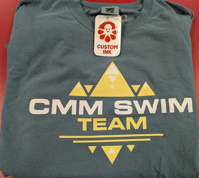 We have a few vintage CMM Swim Team shirts available! Only the listed sizes and quantities available – first come, first served! These are the old design (prior to 2022; see pictures). Smalls and Mediums are blue; Larges are greyish blue. All shirts have same design. All purchases will be delivered to your child in their 8th period class.