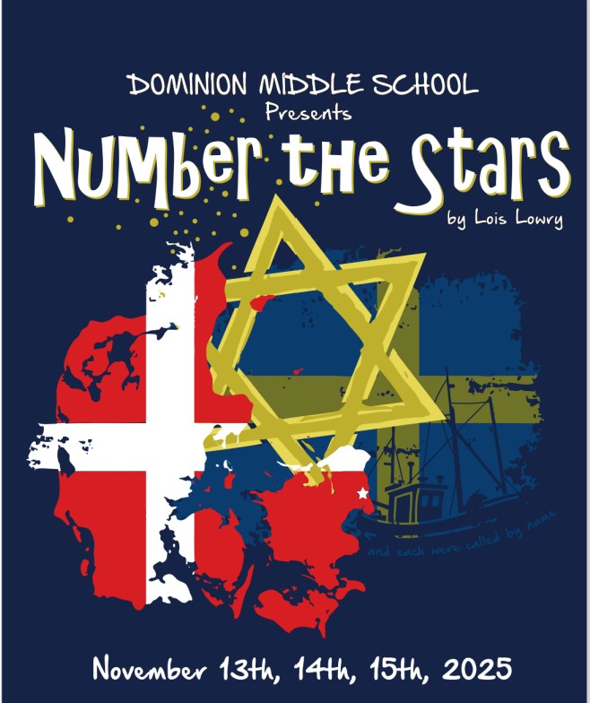 Dominion Middle School Drama will present "Number the Stars" on November 13th, 14th & 15th, 2025. Tickets are $3 for students/seniors, $5 for adults. Kids 5 & under are FREE.