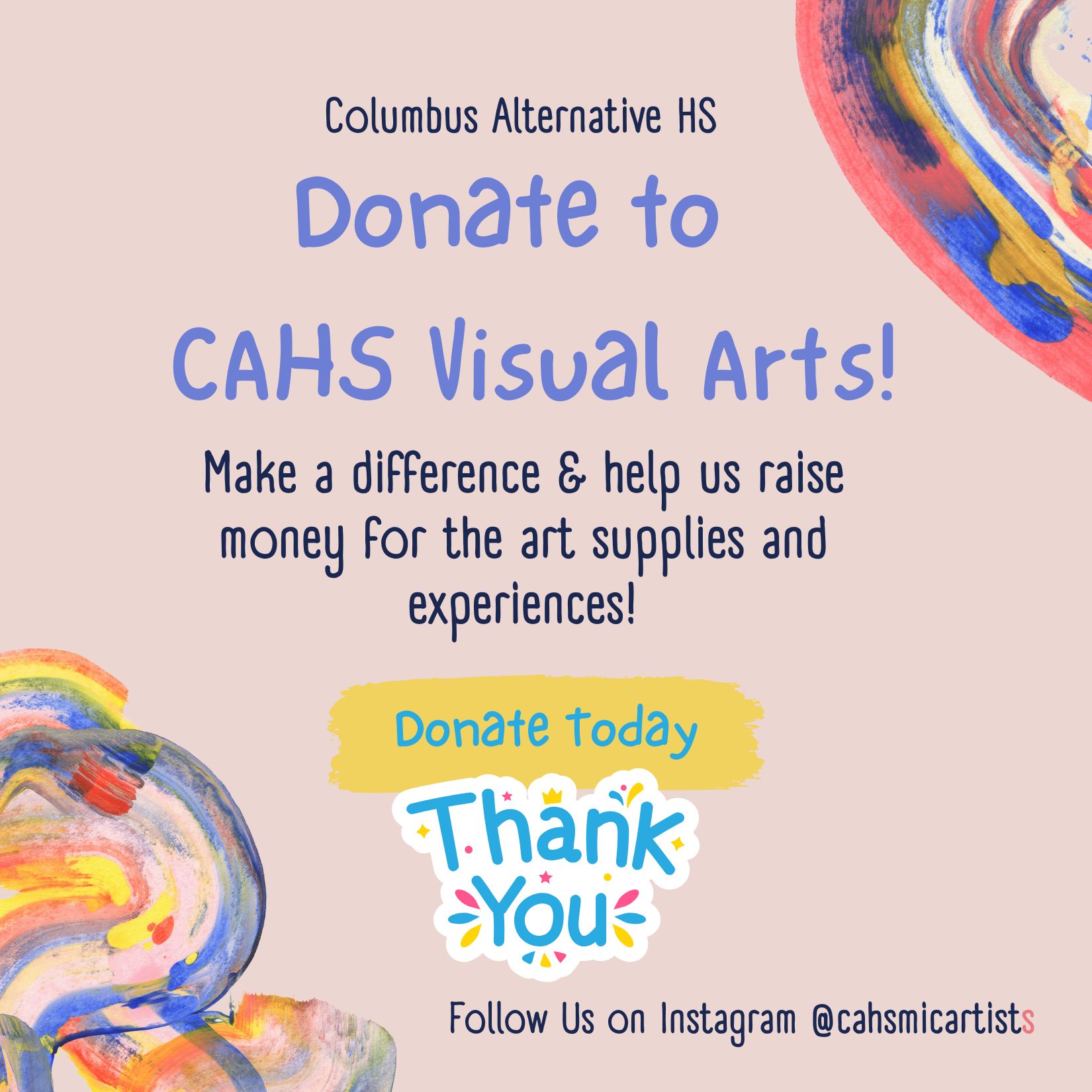 Thank you for Donating to the CAHS Art Department! Your support will go towards 150+ artists and their pursuit of creativity. We will use these funds for supply purchases and experiences in the arts.