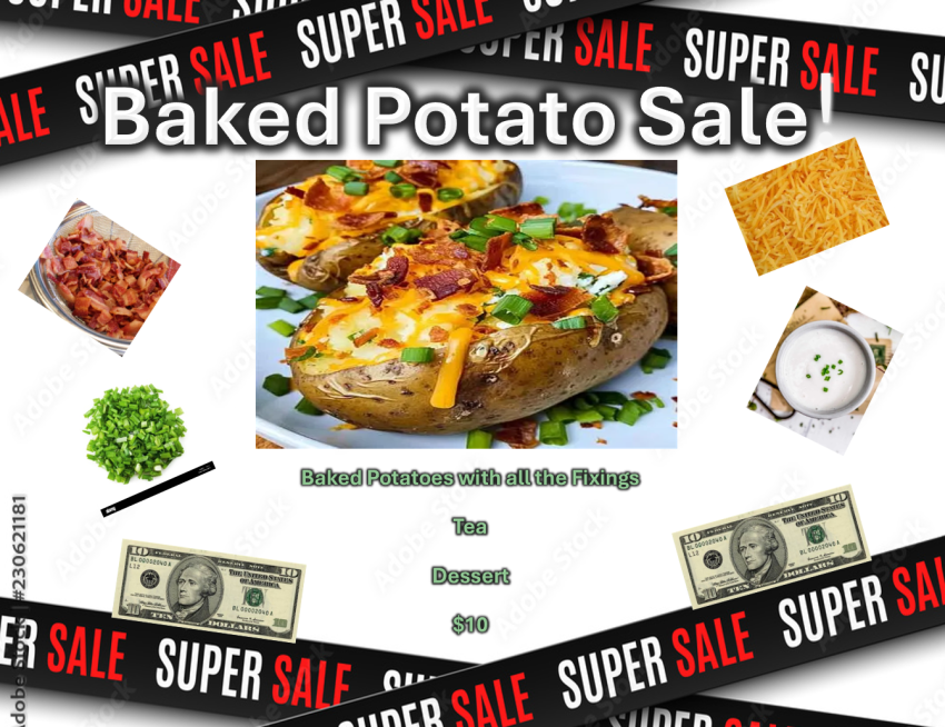 Bake potato sale for the special needs class to help fund an end-of-year trip. We appreciate your support.