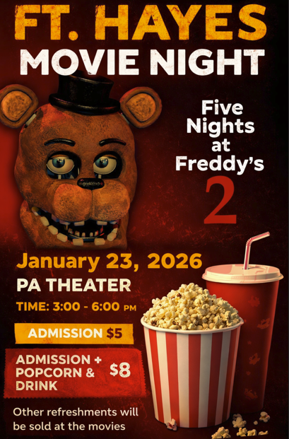 Whether you’re coming for the movie, the snacks, or the vibe… Ft. Hayes Movie Night delivers.