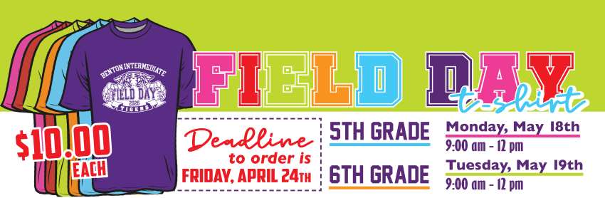 Field Day is just around the corner, and we can't wait to see our kiddos take the field! You can click on the link to purchase a shirt for your kiddo.