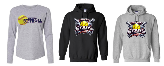 Centennial High School SOFTBALL Sprit Wear Sale two different designs to choose from designed by Centennial students ON THE DARK COLORS THE DESIGN WILL BE OUTLINED IN WHITE SO IT WILL POP OUT.