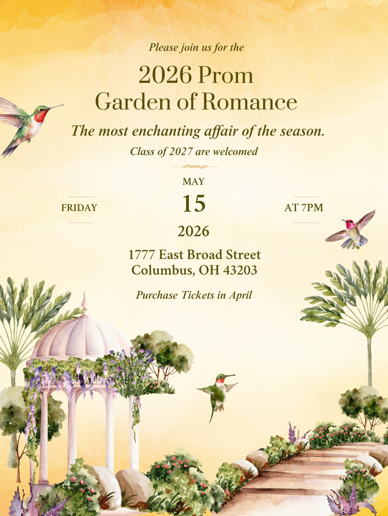 The most enchanting affair of the season. Join us for the 2026 Prom with the theme Garden of Romance.