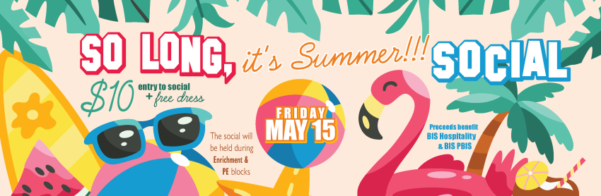 Sun, Fun & School is DONE! Get ready for SUMMER by joining us Friday, May 15th, for a fun-filled event with music, concessions, and more during your PE/Enrichment Block.